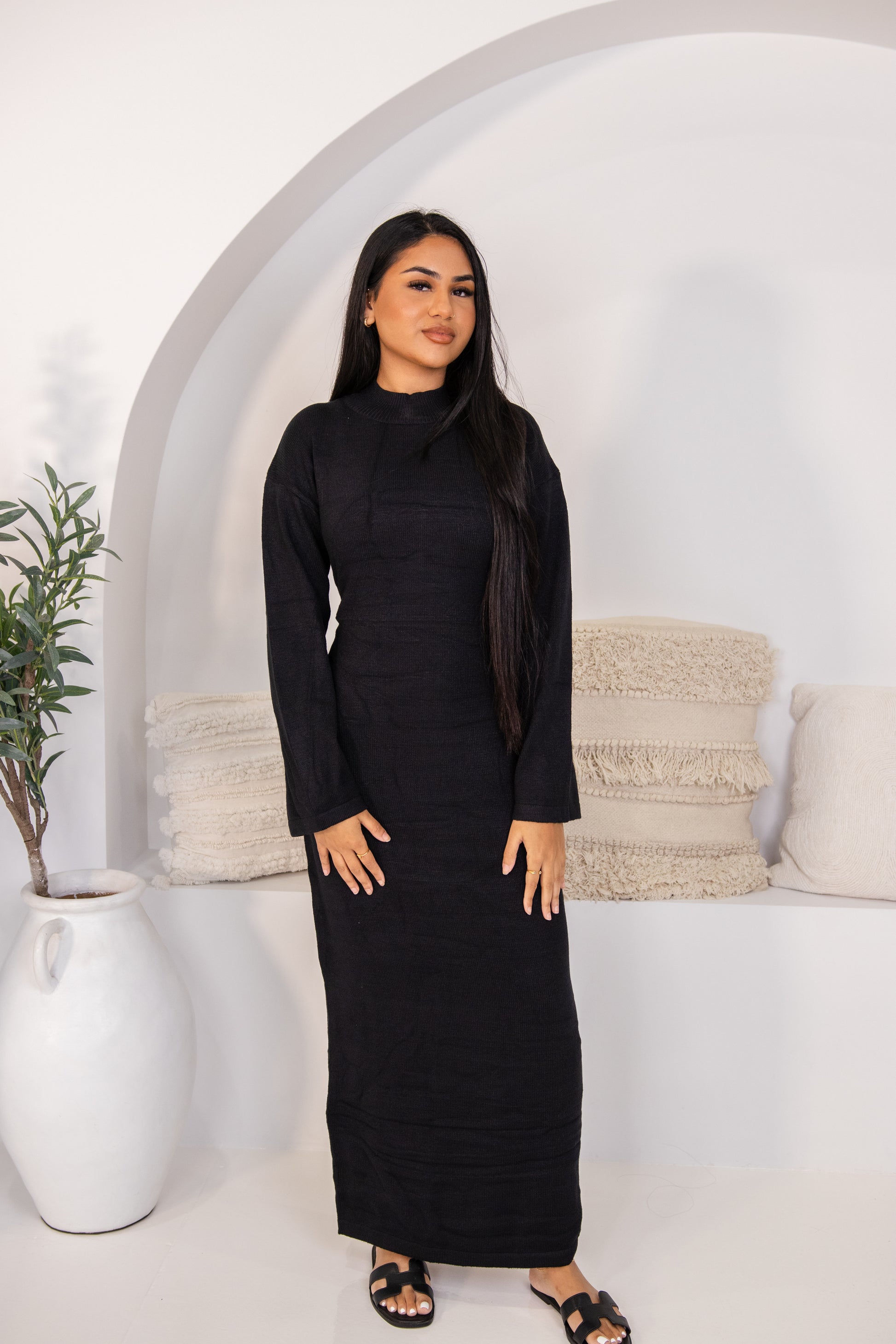Effortlessly modest and beautifully minimal, our Waist-Tie Knit Maxi Dress is designed for ultimate comfort and timeless style. Featuring a relaxed silhouette with long sleeves, a high neckline, and a detachable waist tie, this dress allows you to wear it loose or cinched to flatter your figure. The soft knit fabrication makes it perfect for cooler days, providing warmth without compromising on elegance.