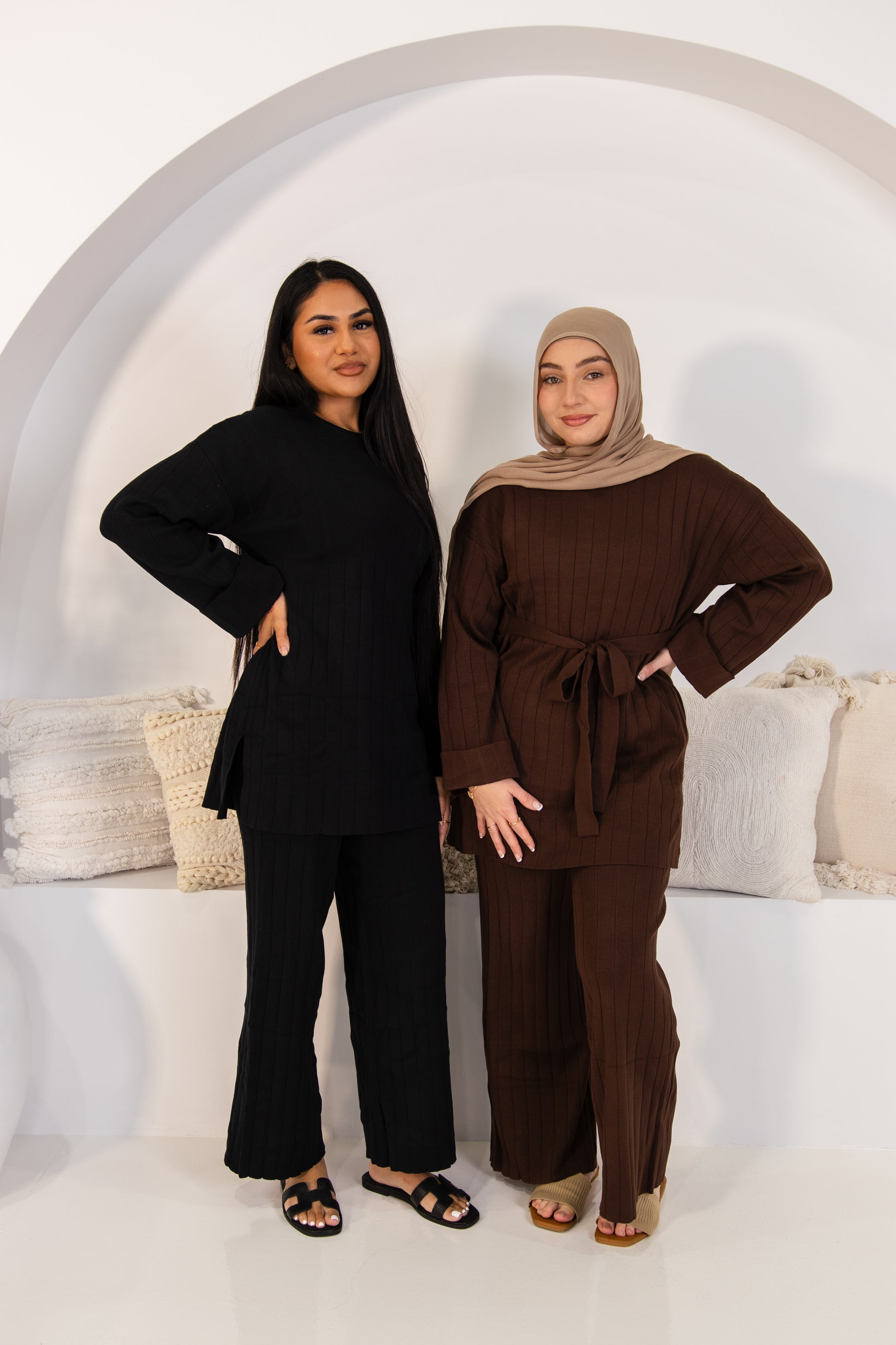 Step into everyday elegance with our Ribbed Knit Tie-Back Set, a beautifully structured two-piece that blends style and comfort effortlessly. Featuring a ribbed long-sleeve top with a flattering waist tie at the back, this design offers shape while keeping a modest and relaxed silhouette. The matching wide-leg pants provide ease of movement and a clean, elongating fit.