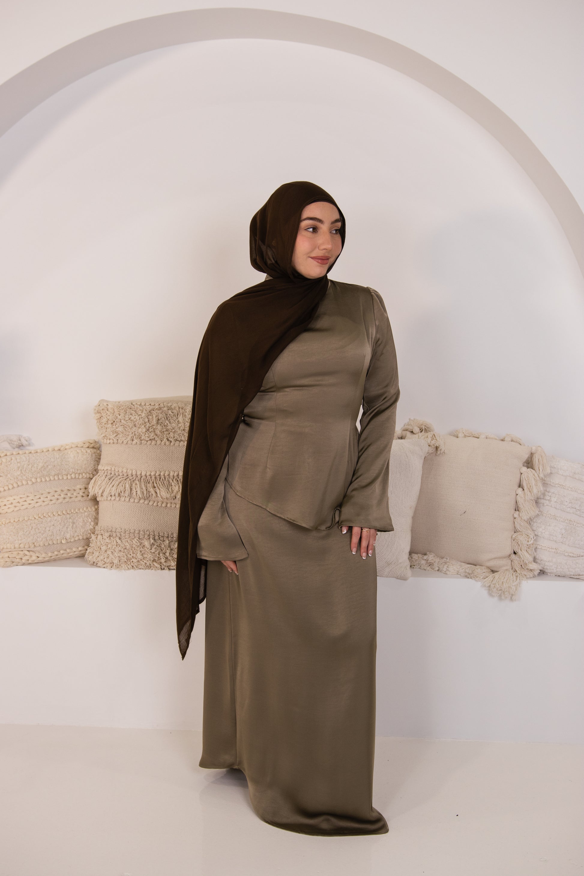Turn heads with our Satin Luxe Two-Piece Set, designed for elegance and sophistication. This set features a structured satin top with a soft flare at the sleeve and a flattering fitted waist that flows beautifully into the coordinating straight-cut maxi skirt. The smooth satin finish adds a subtle sheen, perfect for special occasions, formal events, or elevated evenings out.